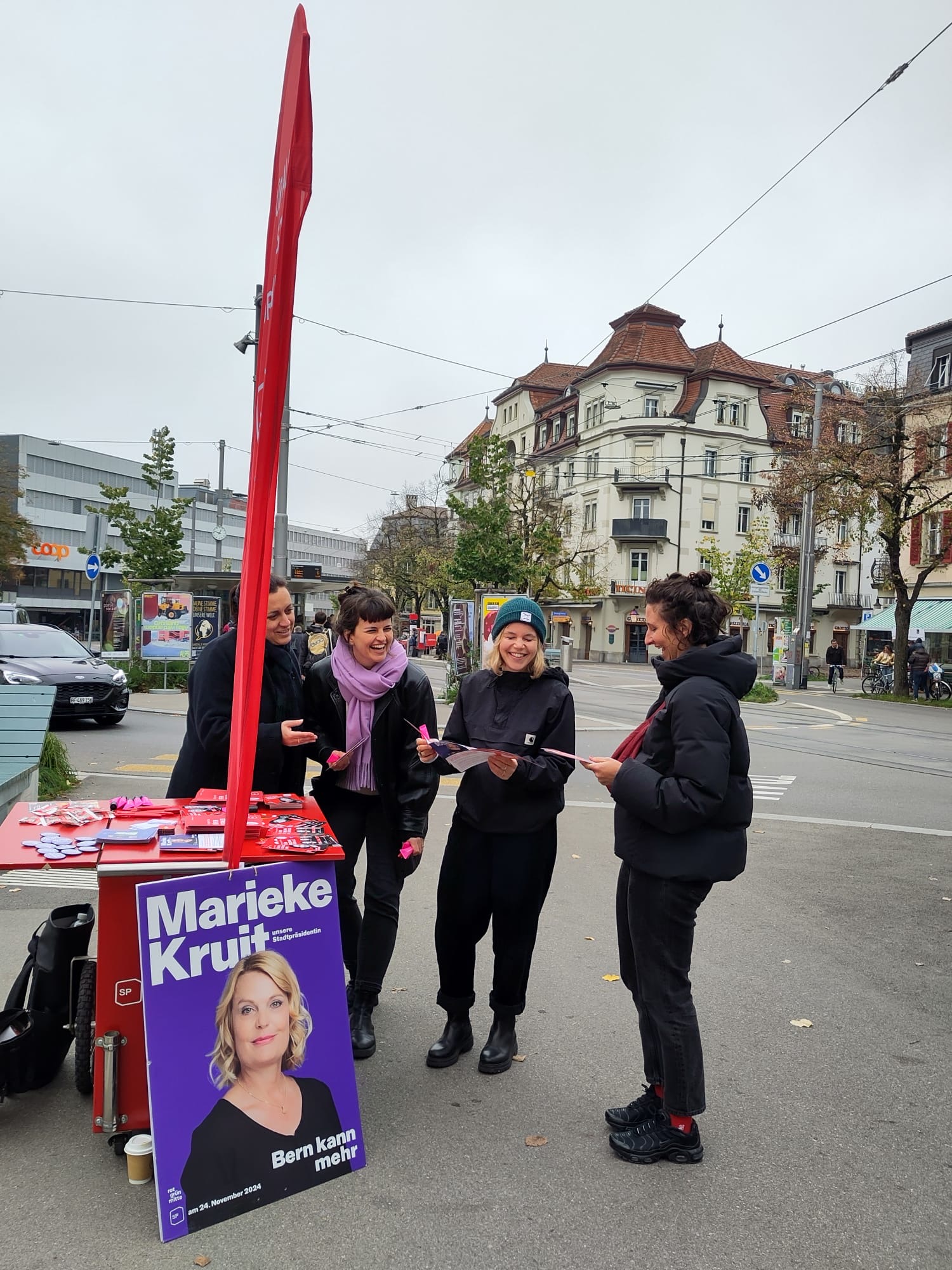 Der Wahlkampf läuft auf Hochtouren und die Kandis der SP Bern-Nord engagieren sich für ein soziales Bern. Nach den Aktionen zur Wohnpolitik folgten weitere Wahlaktionen mit wöchentlichen themenspezifischen Strassenaktionen zu Gleichstellung, Armut und Bildung. Online sind wir mit einem Video präsent und zeigen wie wir unser Nordquartier prägen wollen. Am letzten Wochenende vor den Wahlen feierten wir mit einem Set von Soleil Levant im lokalen Cafe Ferdinand unseren Wahlkampf. Am nächsten Morgen mobilisierten wir bereits wieder auf dem Breitenrainplatz und anschliessend im Breitschträff, wo wir mit potentiellen Wähler*innen telefonieren. Nun sind wir bereit für die letzte Woche und freuen uns auf den Wahlsonntag!